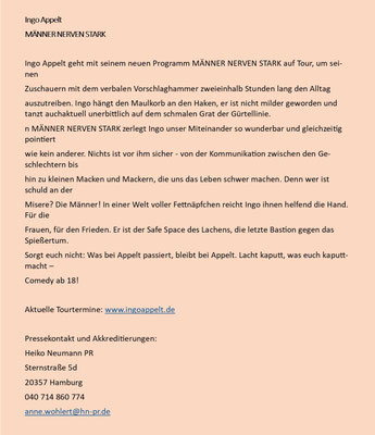 Eintritt 18,- € (Vorverkauf Bücherei Wehlau, Touristik Westerstede, Bachmanns Pub)